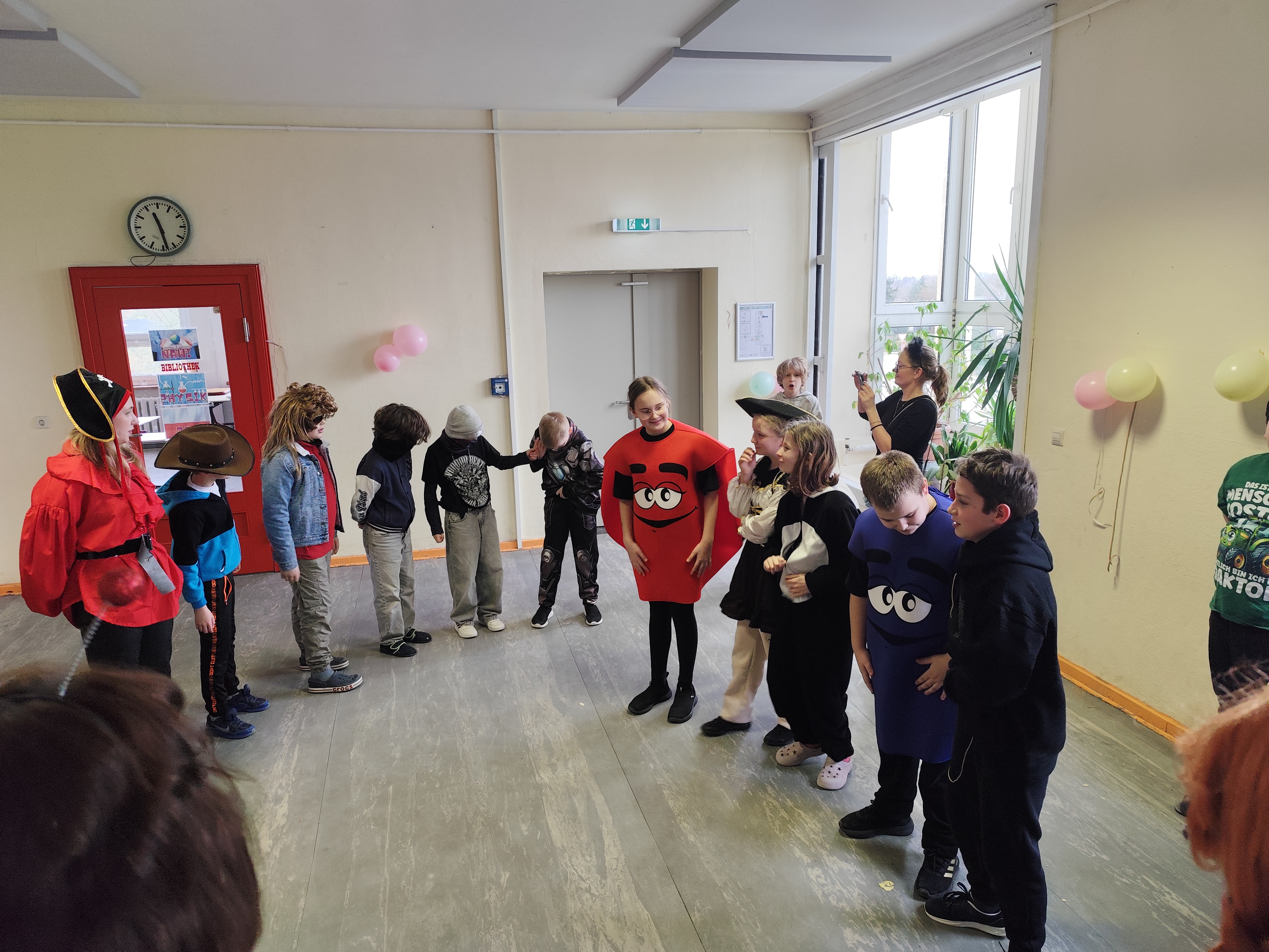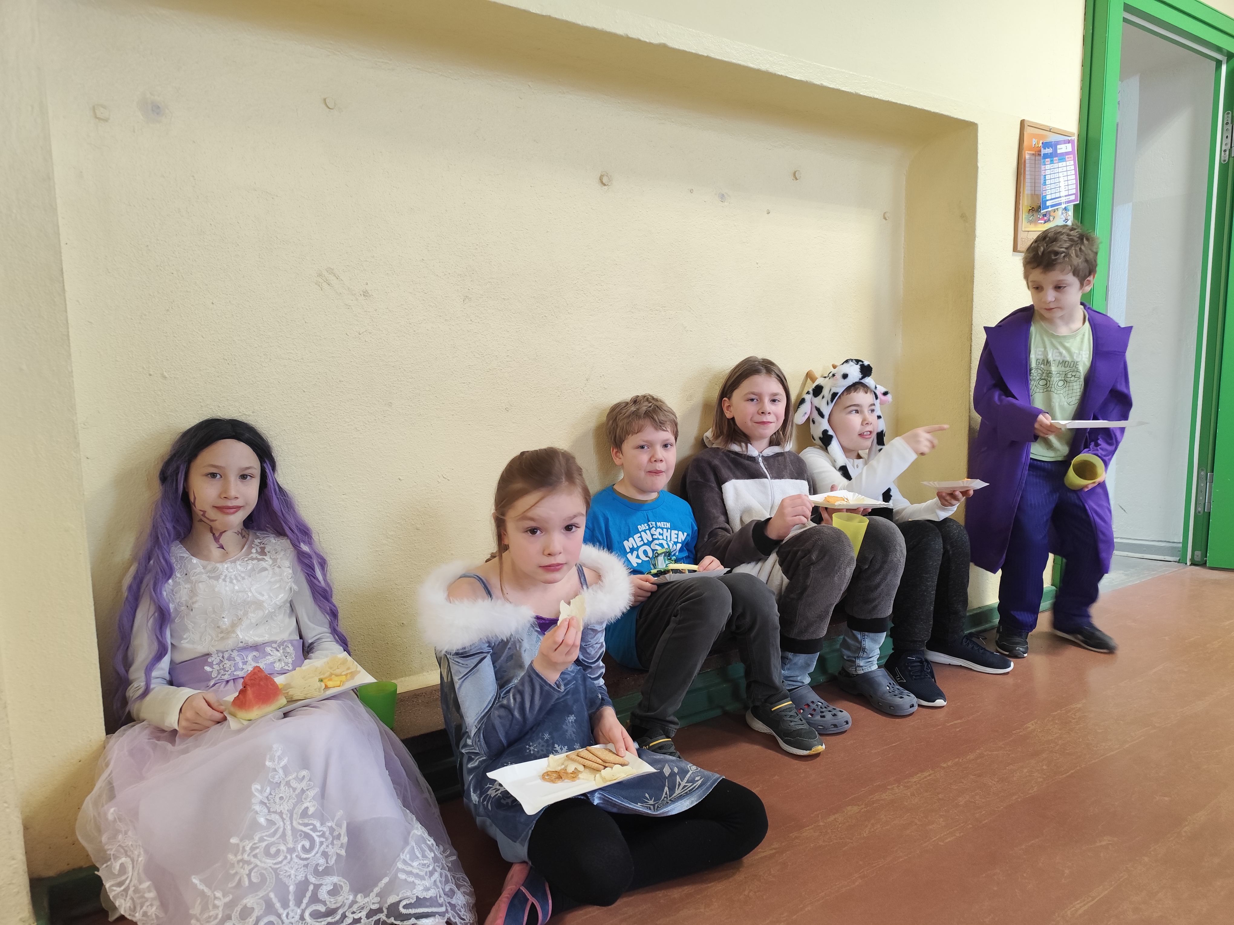 Klassenfeiern: Der Vormittag begann in den bunt geschmückten Klassenzimmern mit gemeinsamen Frühstücken, lustigen Spielen und kleinen Vorstellungen der Kostüme.